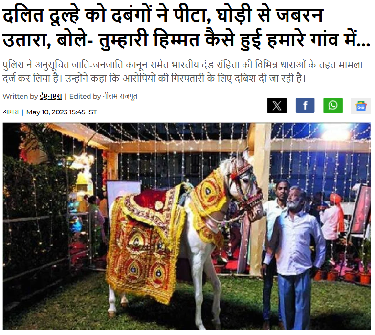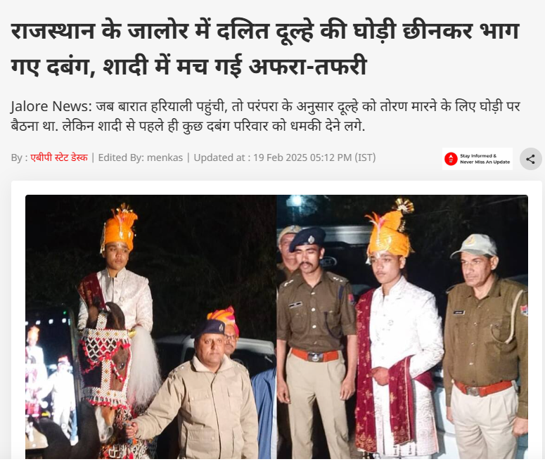 सवाल है कि भारत की सरकार देश को तो साल 2047 के विकसित और शानदार भारत का सपना दिखा रही है, लेकिन क्या वह देश की आजादी के 100 साल बाद 2047 में जातिवादी भारत को भी देखना चाहेगी, अगर नहीं तो देश की 25 फीसदी से अधिक आबादी को जिस जातिवाद के सवाल से हर रोज जूझना पड़ता है, उस सवाल के हल पर बात क्यों नहीं करना चाहती। क्योंकि अगर जातिवाद पर गंभीर चर्चा शुरू नहीं हुई तो देश भले ही 2047 में आजादी के 100 साल का जश्न मना रहा होगा, देश के दलितों और आदिवासियों की एक बड़ी आबादी को अगर जातिवादी घटनाओं से छुटकारा नहीं मिलता, समानता नहीं मिलती तो उनके लिए यह जश्न अधूरा ही रहेगा। सवाल यह भी है कि आखिर एक वर्ग को इंसान से ज्यादा घोड़ी क्यों प्यारी है?